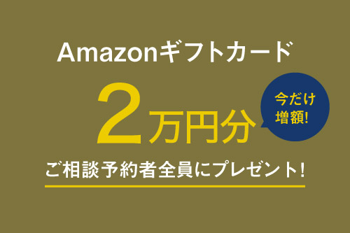 期間中にご相談予約をいただいき、ご来場もしくはオンラインでのお打ち合わせをいただいた方に、もれなくAmazonギフト券(20,000円分)をプレゼントします!