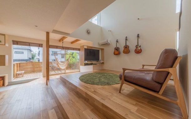狭小地という限られた条件のなかでも、開放的かつ広々とした非日常空間を実現した住宅
