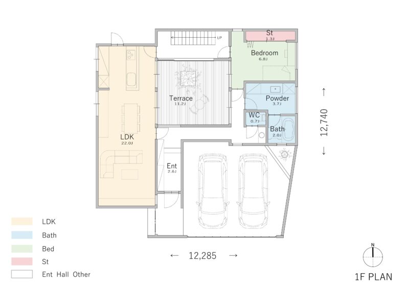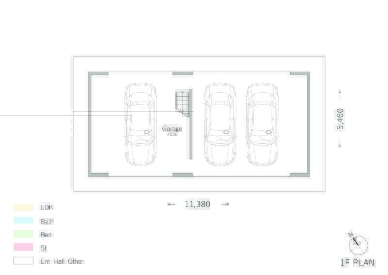 間取り③車をディスプレイのように飾れる別荘地のガレージハウス