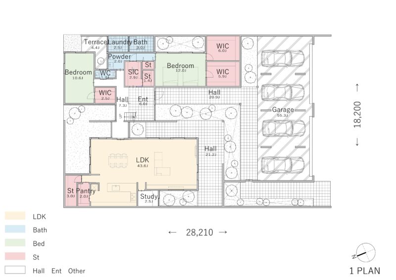 間取り⑤家の中で植栽を楽しめる別荘地のガレージハウス
