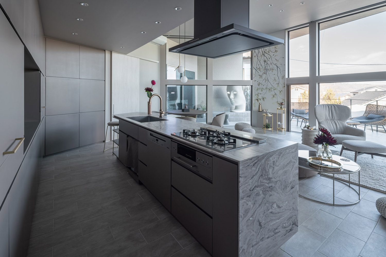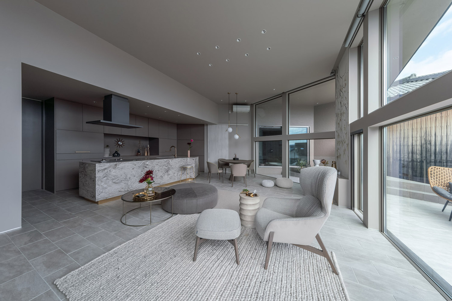 「時に色というのは人生を左右させるほどのパワーと癒やしの効果をもたらす」 様々な色が溢れる外部環境とは対照的に、自宅に帰れば上品かつ穏やかなグレートーンを基調とした空間が ゆったりと落ち着いた家時間を演出します。