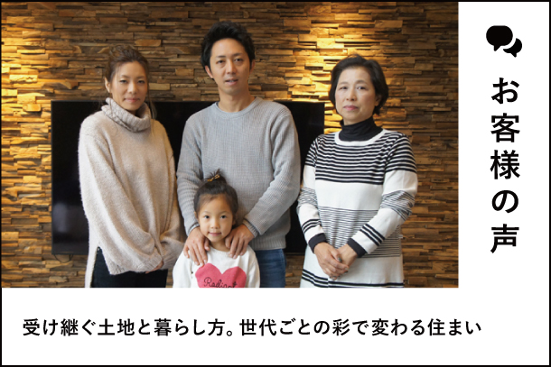 親孝行のために、両親に家をプレゼントしたいという想いから始まった家づくり。そのため、「両親想い」を設計のコンセプトに進められました。LDKや屋上テラスは、ご兄弟も含めてご家族全員が集まった際に、誕生日会やバーベキューなど、心ゆくまで歓談を楽しめるようにプランを描くなど、家全体を通してご両親、そしてご家族への感謝が詰まった住まいとなりました。